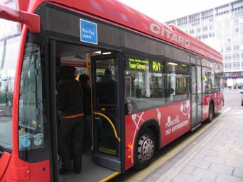 上 图 : 英 国 伦 敦 使 用 的 燃 料 电 池 公 共 巴 士 ( 2006 年 2 月 )